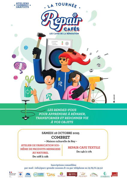Le Parc naturel régional des Grands Causses, la communauté de Communes Monts Rance et Rougier et la mairie de Combret vous donne rendez-vous le samedi 18 octobre 2025 à la Maison culturelle Rey, à Combret, pour une journée placée sous le signe du partage et du “faire soi-même”.