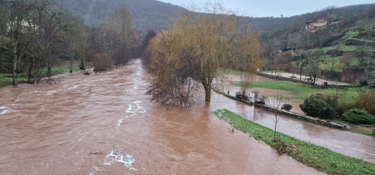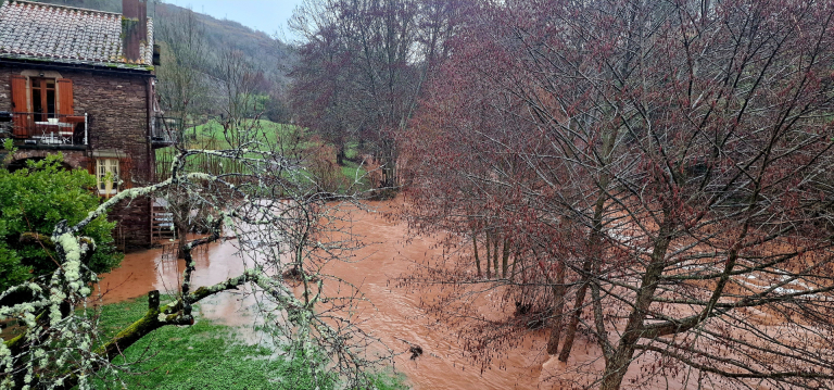 Après une première crue qui n’a pas duré en début de mois, le Rance et ses affluents dont le Thérondel et la Grêle sont de nouveau sorti de leur lit ce jour sur notre commune.