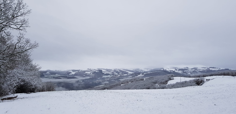 Et la neige s’est invitée recouvrant la campagne et le village d’un beau manteau blanc.