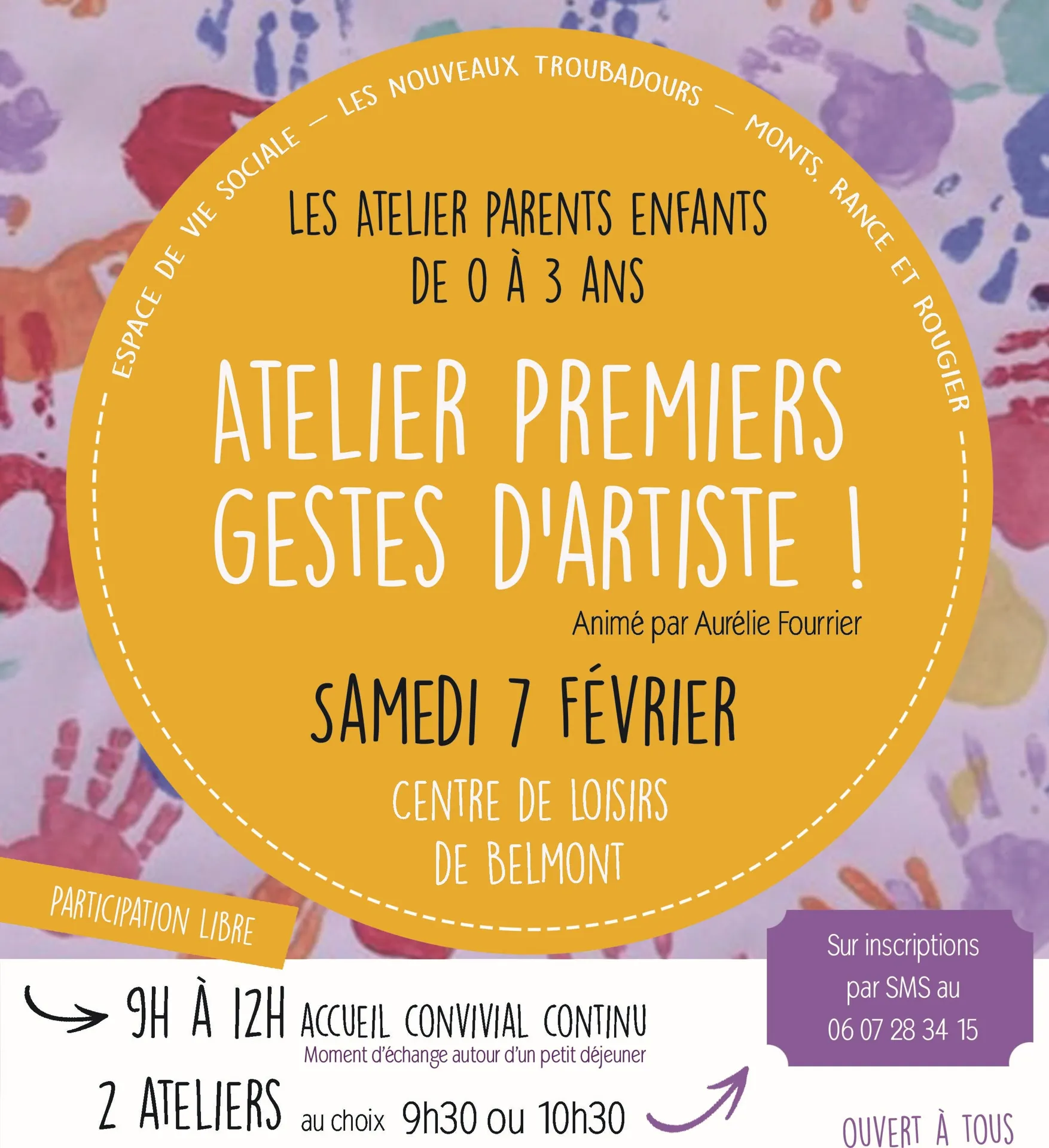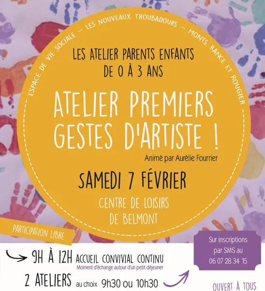 L’espace de vie sociale organise à l’occasion deux ateliers de 45min pour les petits artistes en herbe animé par Aurélie Fourrier pour les enfants de 0 à 3 ans accompagnés de leurs parents.