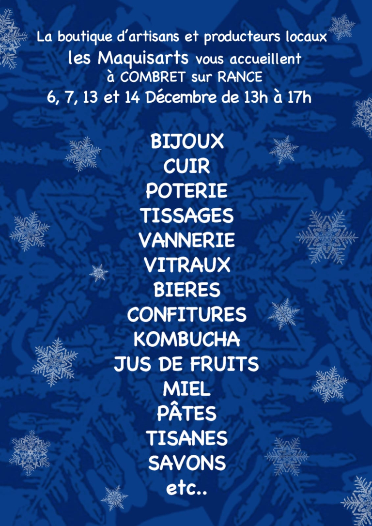 La boutique artisanale de Combret ouvre ses portes pour les fêtes de fin d’année. Vous pourrez y découvrir des créations locales : objets décoratifs, poteries, bijoux, textiles et petites gourmandises.
